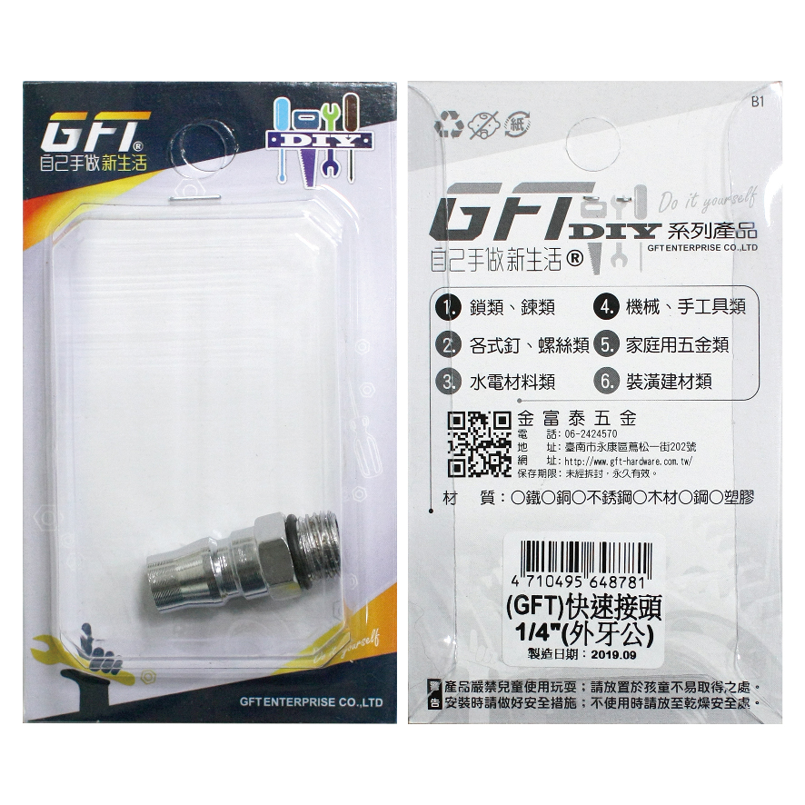 GFT-DIY-快速接頭-3/8″外牙公(1入/卡)